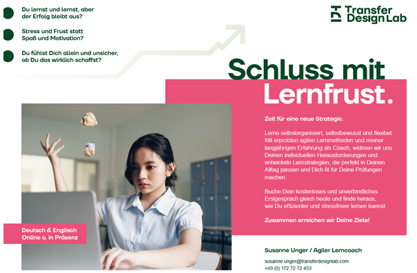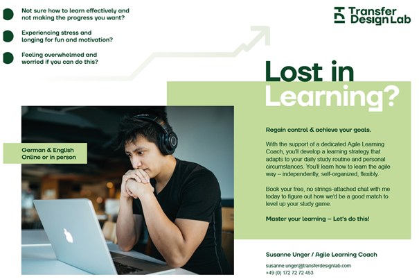 Agiles Lerncoaching richtet sich an Studierende, die ihre Lernprozesse strukturieren, selbstorganisierter lernen und ihre Lernziele über einen definierten Zeitraum verfolgen möchten.